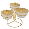 3-Division Dry Fruit Glass Bowls With Golden Stand