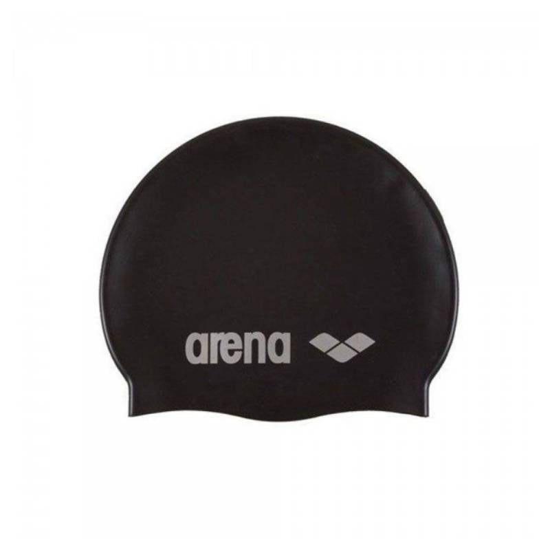 Arena Classic Silicone Swimming Cap-Black & Silver: