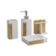 Maximize your bathroom storage and organization with our Bathroom Set White Wooden. This set of four includes a toothbrush holder, soap dispenser, tumbler, and soap dish, all made from sturdy and stylish white wood. Keep your bathroom essentials within reach while adding a touch of elegance to your space.