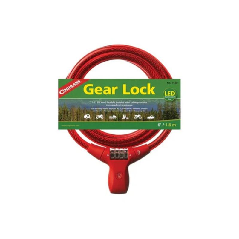 The Coghlan‰۪s 6‰۪ Gear Lock is designed to protect a variety of items around the house, wilderness or out at the campsite. A sturdy 12 mm steel cable with a vinyl cover protects your gear from scratches and deters would be thieves. The resettable 4-digit combination can be set to one of 10,000 possibilities, plus it has an LED illuminated dial to see your code at night. Available in two high visibility