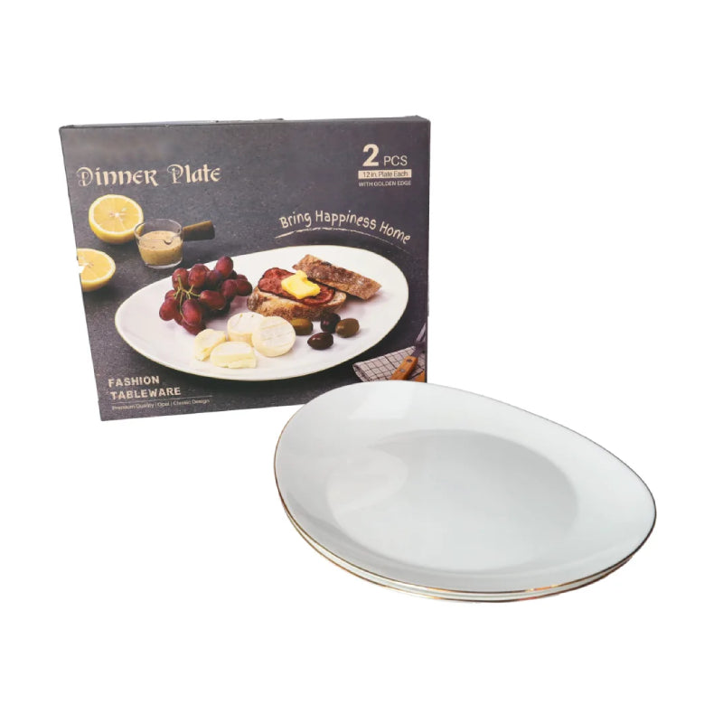 This set includes two 12-inch white dinner serving plates designed to complement any table setting with their classic simplicity. Their ample size is ideal for serving generous portions, making them perfect for family dinners or entertaining guests. Crafted for durability and easy maintenance, these plates provide both practicality and understated elegance for everyday use or special occasions.