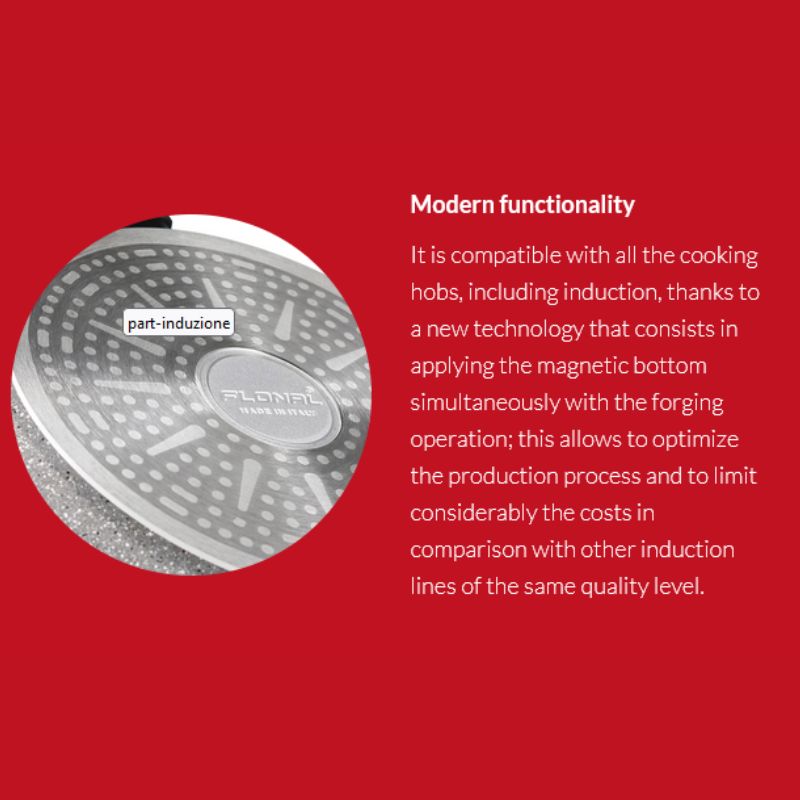 The Magma-Tech Plus non-stick coating ensures the maximum release besides a greater resistance against scratches and abrasions, even with metallic tools. It is studied for intensive use, guarantees stable and efficient performances
