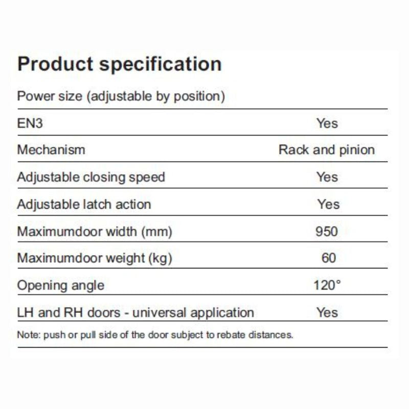 - Closer fully integrated into door leaf, the guide rail is only visible when door is open