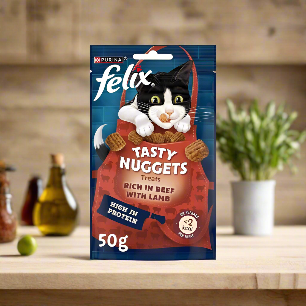 - FELIX Tasty Nuggets are delicious high in protein treats for a moment in between meals full of flavour