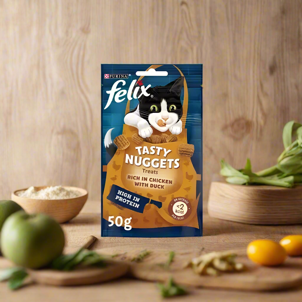 - FELIX Tasty Nuggets are delicious high in protein treats for a moment in between meals full of flavour!