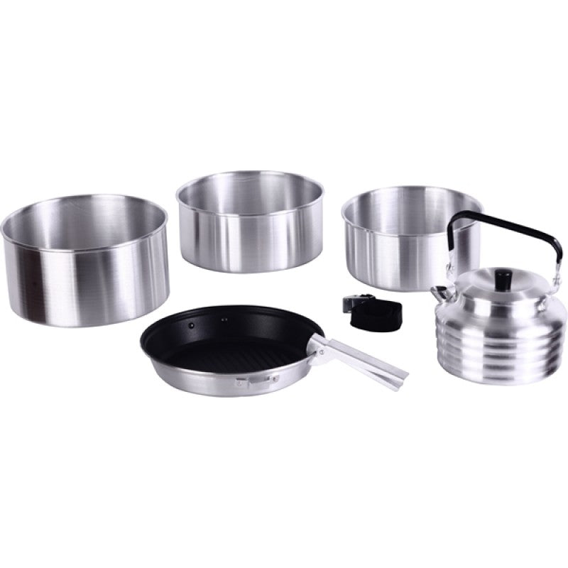 - Ideal for 3–5 Persons: Includes 3 pots, 1 non-stick frying pan, 1.5L kettle, and 1 gripper — ideal for cooking meals for small groups, family camping, or backpacking trips. Brew tea or coffee on the go with the included camp kettle.