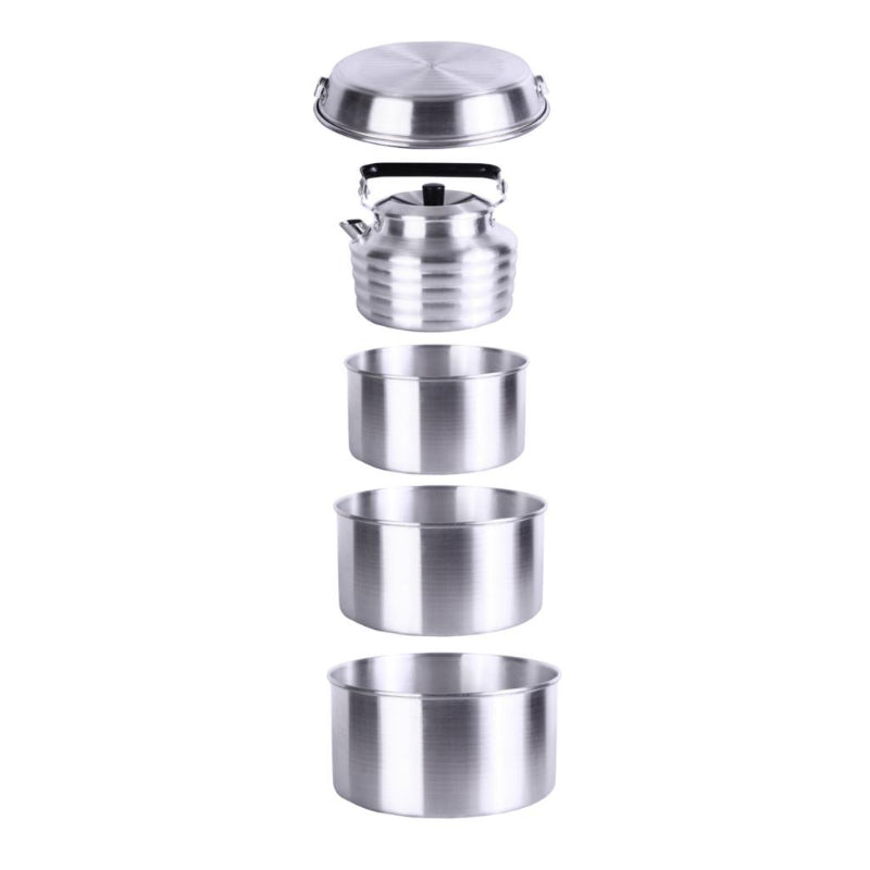 The KingCamp Camper 4 Aluminum Camping Cookware Set is crafted from lightweight, high-temperature-resistant aluminum, making it ideal for all your outdoor cooking needs. This durable and non-toxic cookware set is perfect for camping, hiking, backpacking, and picnics. It includes three stackable pots of different sizes, each designed to prepare a variety of meals in the wilderness.