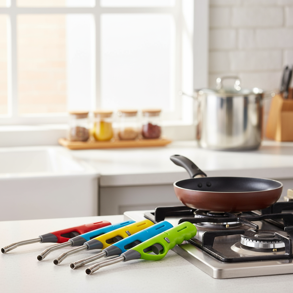 Light up your kitchen adventures with this Kitchen Gas Flexible Lighter! Its bendable neck lets you reach tricky spots with ease, making lighting stoves, grills, or candles a breeze. Safe, handy, and ready to spark up your cooking fun!
