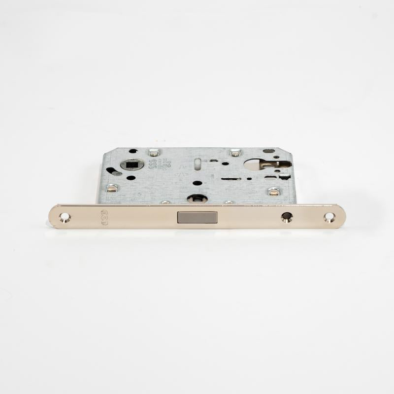 Magnetic movement lock. It is particularly suitable for modern internal doors, thanks to its lean look design. Magnetic Mortise Lock SS Finish is distinguished by the extraordinary silent closing and the precision in mechanical couplings that give a pleasant feeling of fluidity in the handle and key movements.