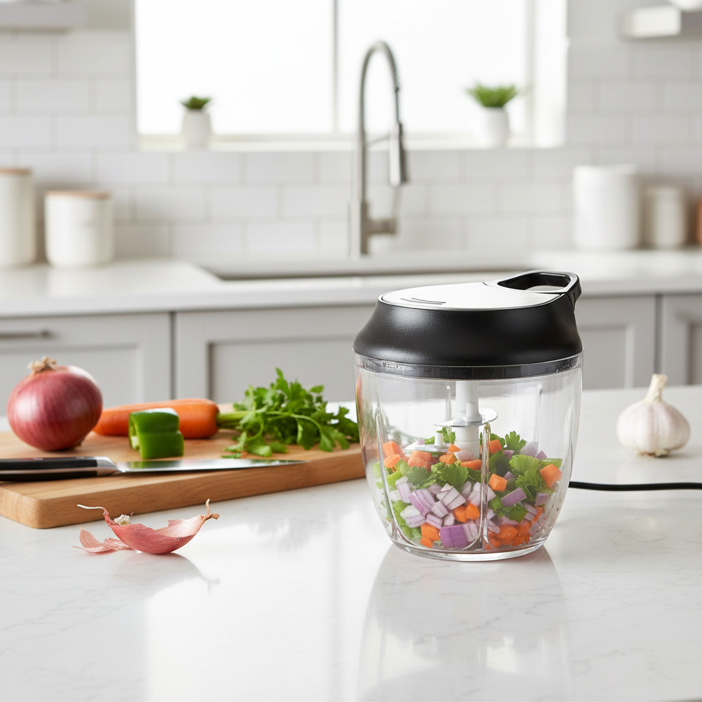 Make meal prep a breeze with this Manual Chopper featuring a sleek steel cover and five razor-sharp blades. It’s your kitchen’s new best friend for quick, safe, and fun chopping of veggies and more. Chop, chop—let’s get cooking!