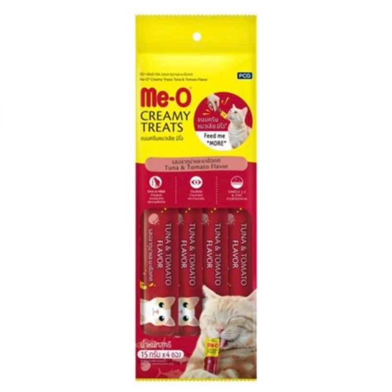 Enjoy Me-O's indulgent Cat Creamy Treats! Made with real tuna and flavorful tomato, this 60gm snack is a tasty and nutritious treat for your feline friend. With a high protein content, your cat will love the creamy texture and you'll love knowing they're getting a balanced, healthy snack.