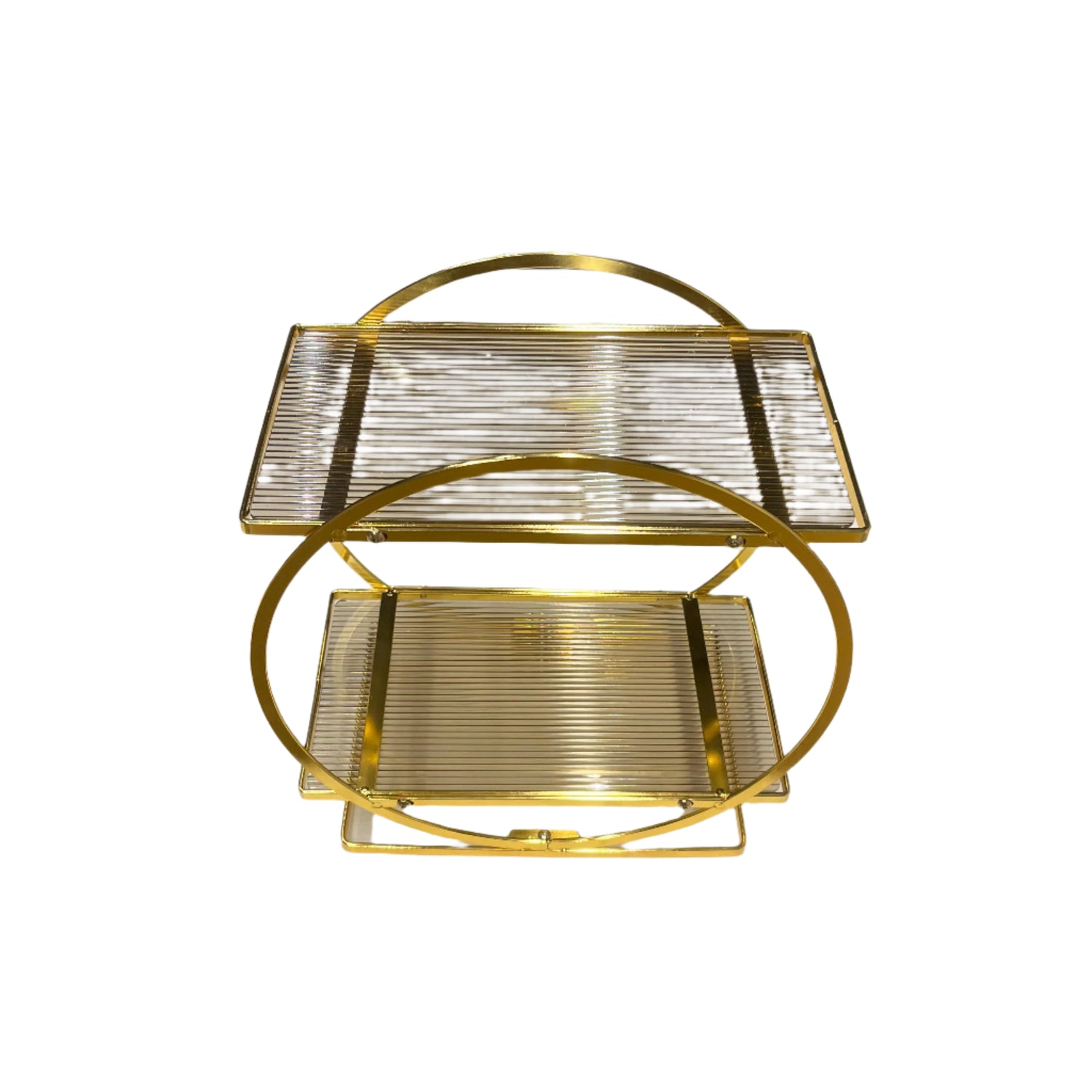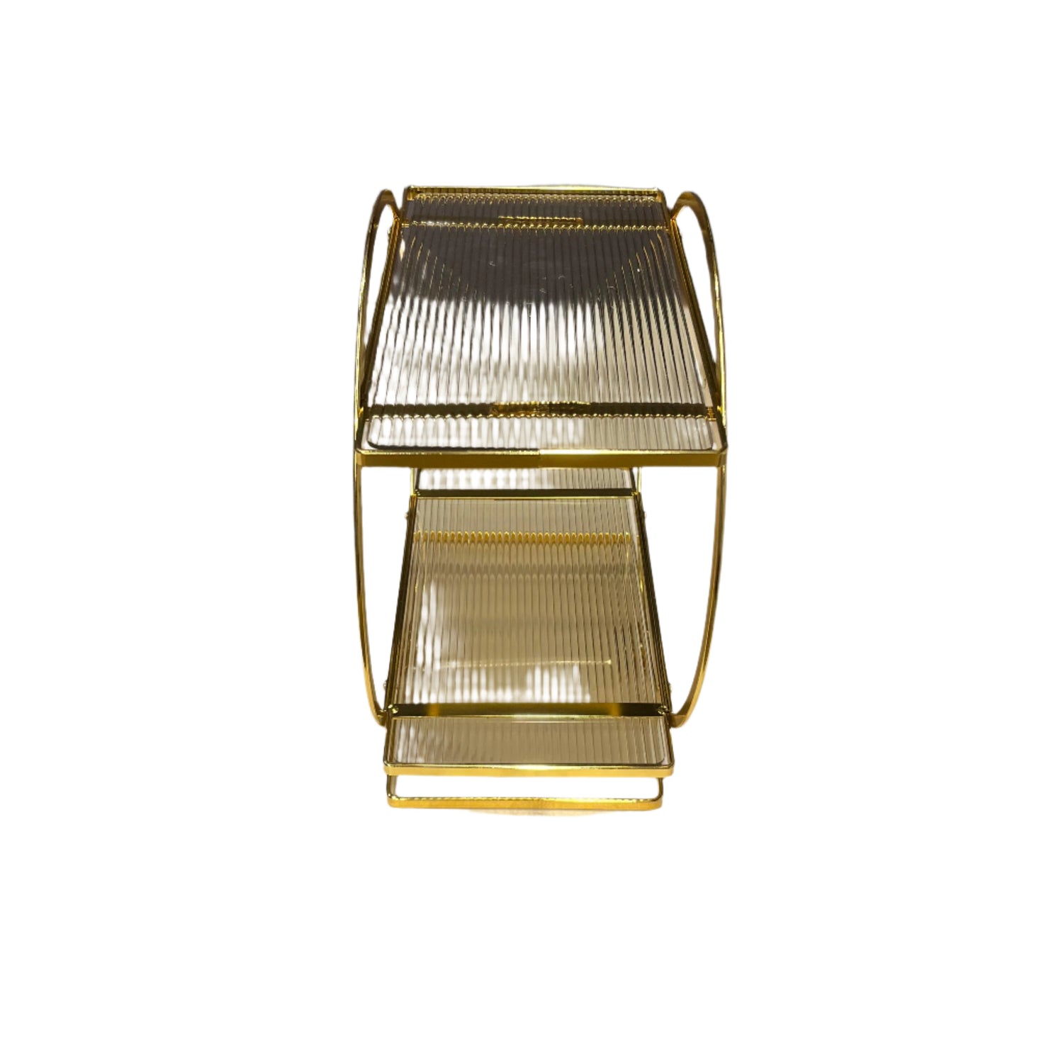 Elevate your beauty routine with our Metal Vanity Stand. Sleek and sturdy, this round stand boasts a luxurious golden finish. Keep all of your cosmetics organized and in easy reach, creating a seamless and stress-free getting-ready experience. Make your vanity a statement piece with this elegant stand.