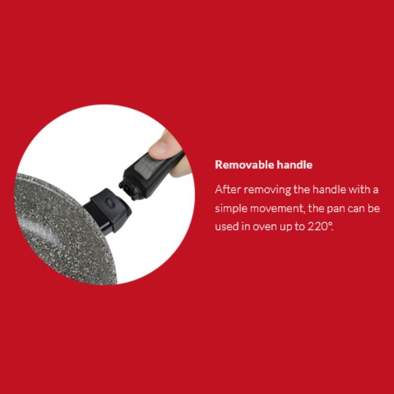 - Removable ergonomic handle, that allows the use of the product in the oven