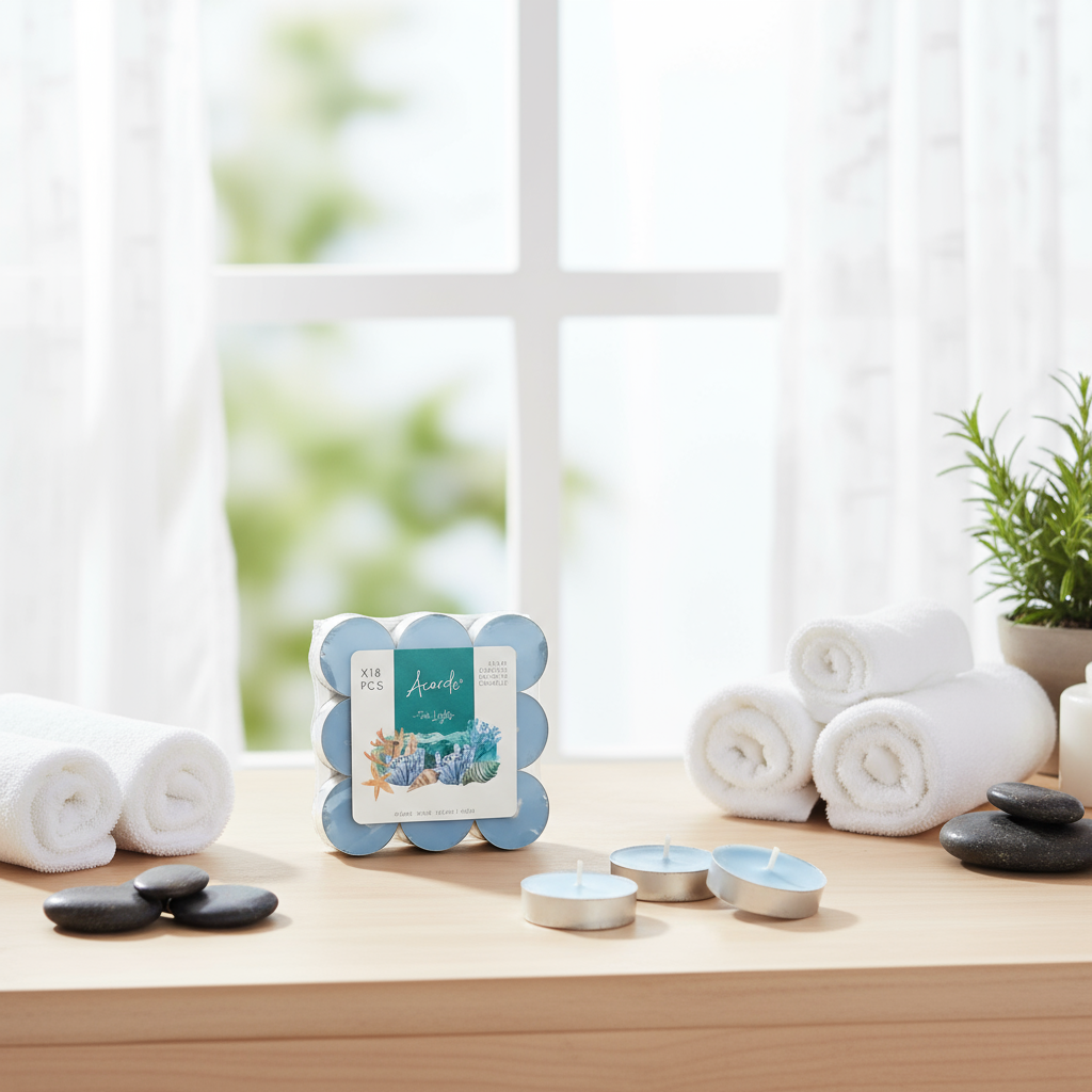 Infuse your home with the soothing and refreshing aroma of the ocean with our Ocean Tea Light Candles Set. With 18pcs in each set, you'll have plenty to create a calming atmosphere in any room. Enjoy the benefits of aromatherapy and relax with our premium quality candles.