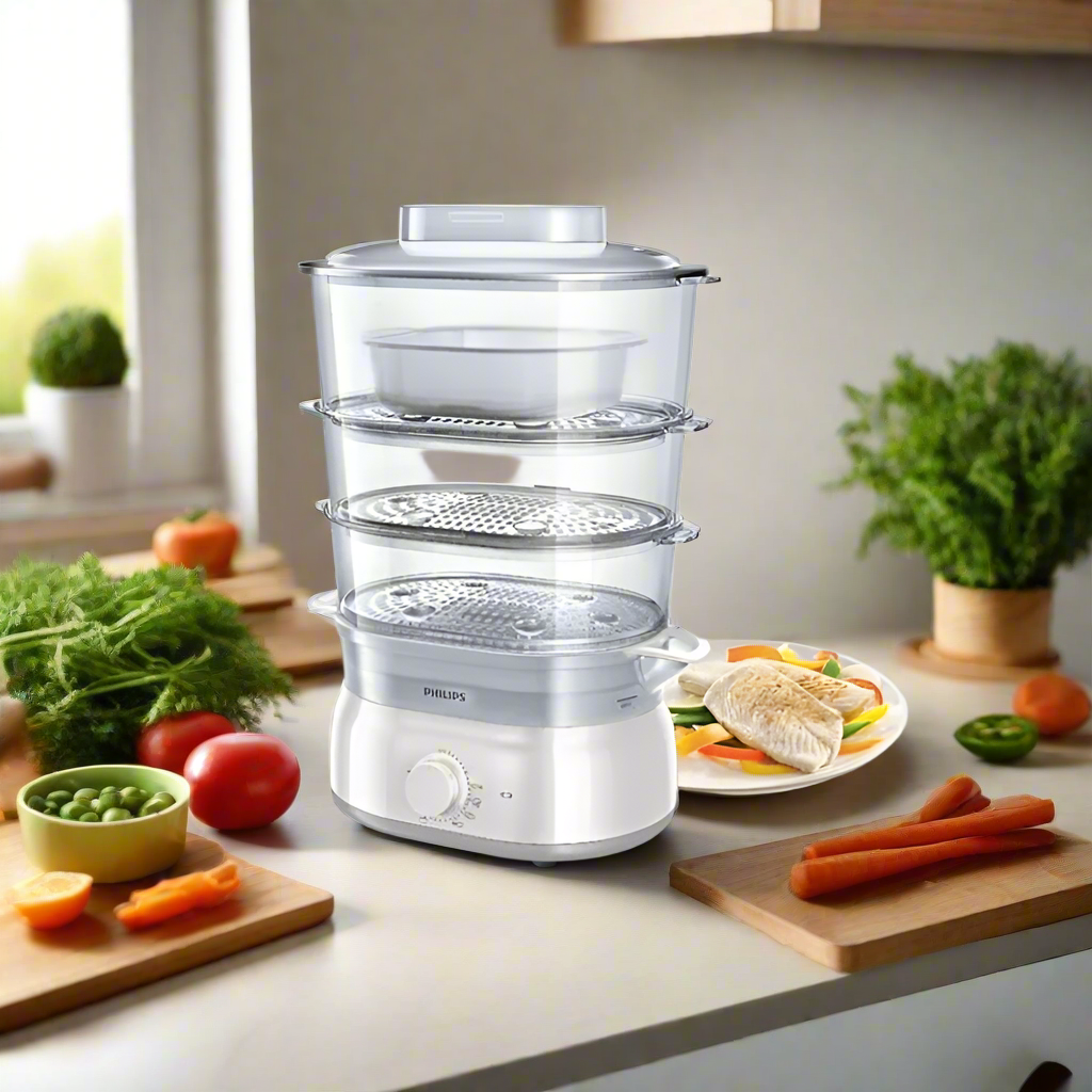 Experience the effortless and healthy way to cook your meals with the Philips Food Steamer 900W. With its powerful 900W motor, you can steam a variety of dishes in no time, preserving essential nutrients and flavors. Say goodbye to greasy and unhealthy cooking methods and hello to delicious and nutritious meals!