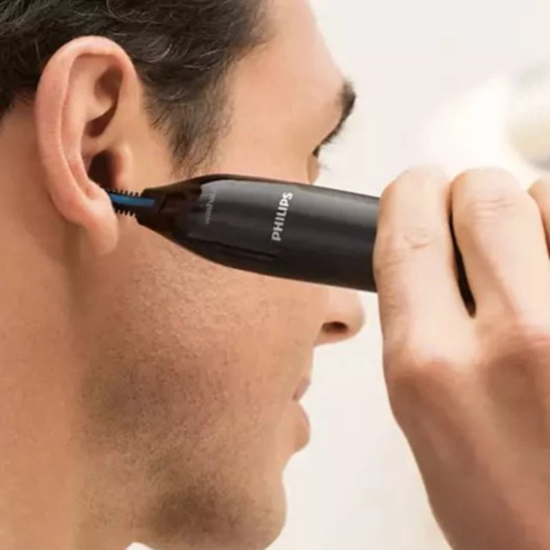 The Philips Nose and Ear Trimmer is designed for maximum performance and safety. The trimmer is 100% waterproof and has a high-grade stainless steel blade to trim nose and ear hair with precision.
