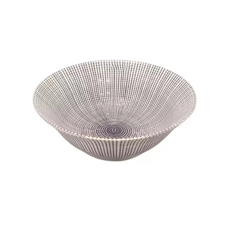 Porcelain Round Black Dotline Serving Bowl 8" White