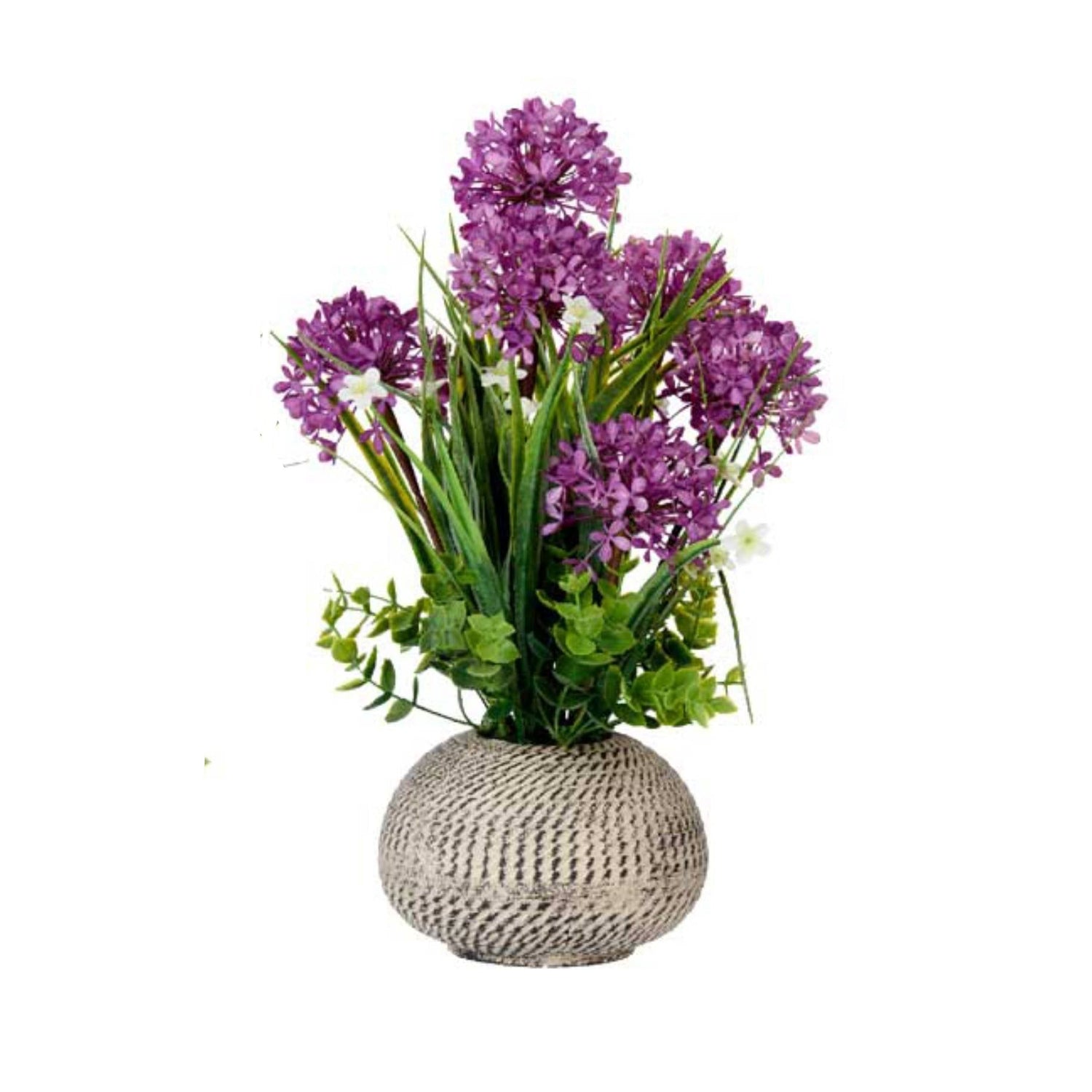 Artificial Flowers in Round Rustic Pot