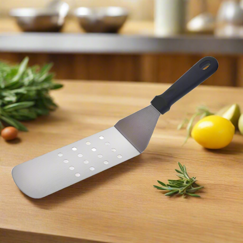 - By using this steak frying spatula with a non-scalding and non-slip plastic handle, it is very easy to grip and won't hurt your hands and is easy to clean; it can be used to fry steak, fry fish and is a perfect cooking tool.