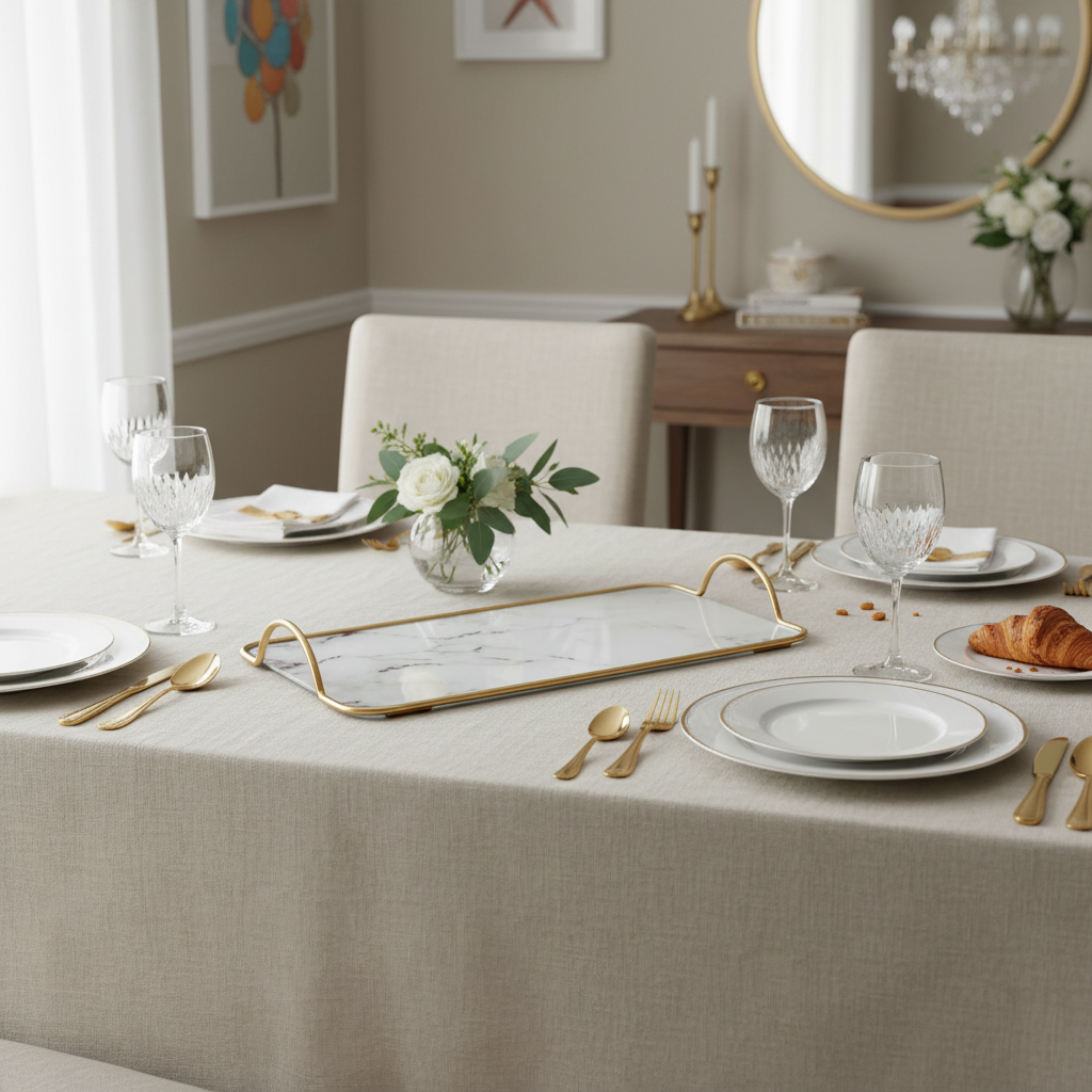 This 35cm tray features a sleek white marble effect glass design with convenient handles. Made with sturdy materials, it adds a touch of elegance to any room while providing a functional serving or display surface. Perfect for entertaining or organizing your space with style.