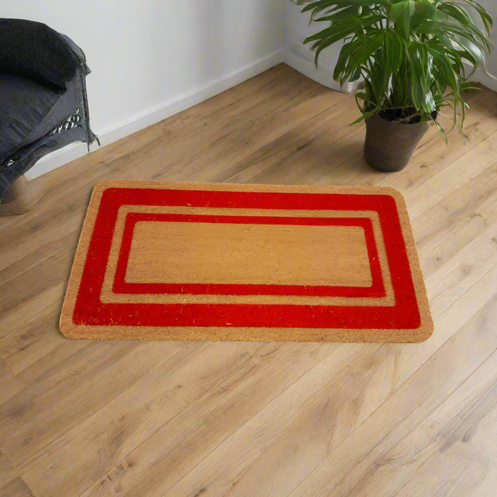 - Coir door mats with vinyl backing for enhanced durability